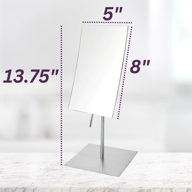 JERDON Rectangular Tabletop Makeup Mirror - 3X Magnification with Nickel Finish - 5-inch by 8-inch Vanity Mirror – Pivot Adjustment - Model JP358N
