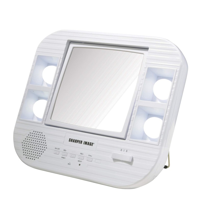 - MULTIPLE LIGHT SETTINGS & BLUETOOTH CAPABILITY - This compact mirror is equipped with bluetooth technology and operates on AA batteries or AC/DC power. The mirror has 2 light settings, allowing you to dim the brightness when needed. The 4 bulbs never need replacing and remain cool to the touch.