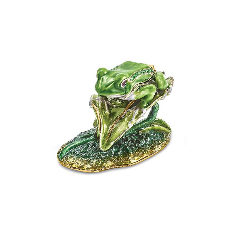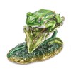 Jere Luxury Giftware Bejeweled Lilly Frog On Lily Pad, Pewter with Enamel Collectible Trinket Box with Matching Pendant Necklace