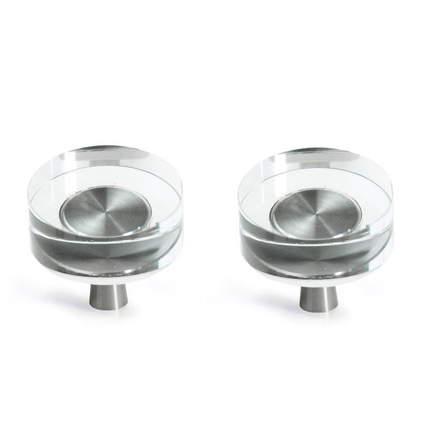 JEREVER 2 Pack Glass Crystal Knobs Brushed Nickel Drawer Pull Cabinet Handle for Dresser Kitchen (Round)
