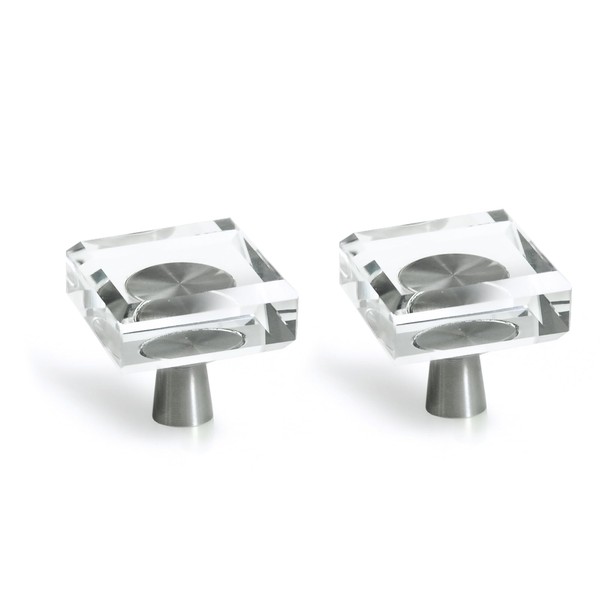 JEREVER 2 Pack Glass Crystal Knobs Brushed Nickel Drawer Pull Cabinet Handle for Dresser Kitchen (Square)