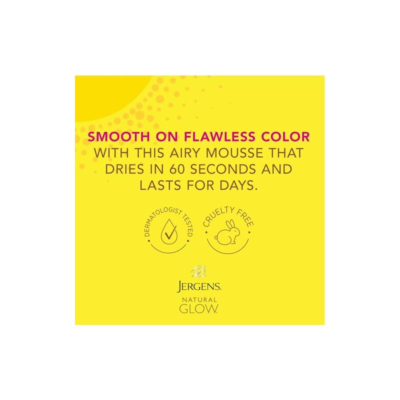 - TROPICAL, FRUITY SCENT, DERMATOLOGIST-TESTED - Jergens Natural Glow Mousse gives you an island escape with its tropical, fruity fragrance, crutelty free, and fast-drying formula
