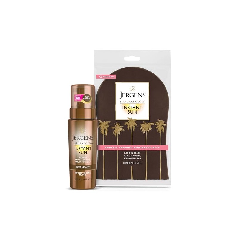 Jergens Jergens Natural Glow Instant Sun Bundle: Deep Bronze Sunless Tanning Mousse, 6oz Bottle and Applicator Mitt