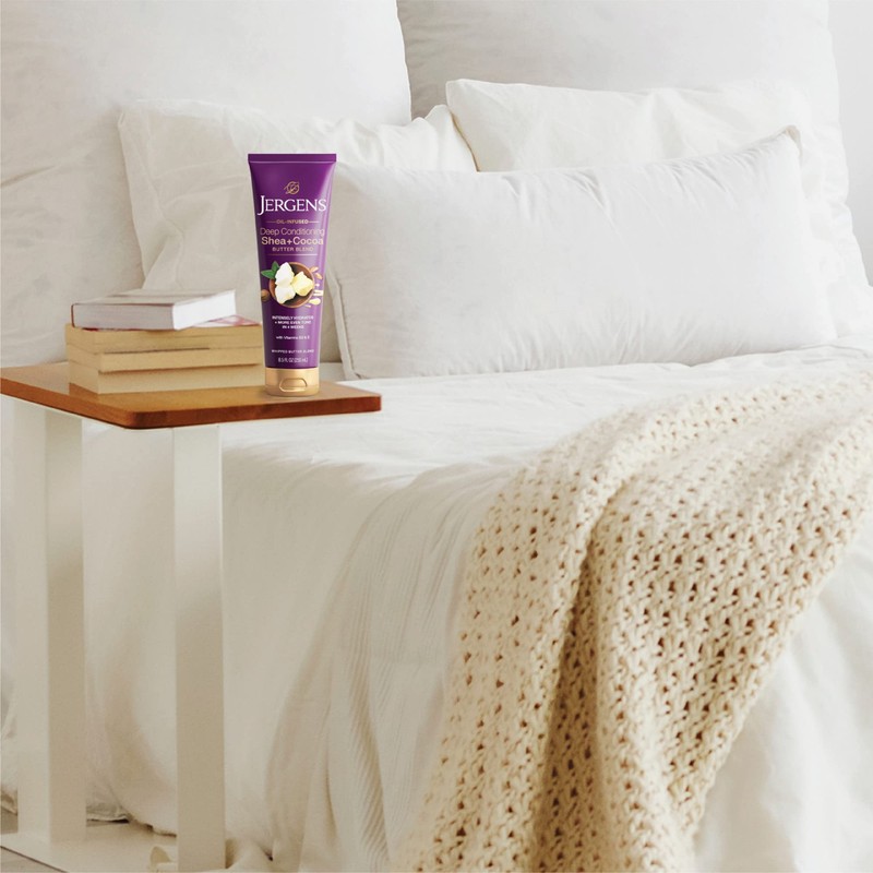 This tone-enriching formula, with a blend of naturally derived African Shea butter, nourishing cocoa butter, Vitamin E, and Vitamin B3, deeply hydrates and evens skin tone. In just 4 weeks, this formula intensely hydrates and creates a more even skin tone. This rich formula intensely hydrates dry-prone areas and promotes even skin tone and texture. The whipped butter texture feels great on your hands and body while hydrating and moisturizing your body. This formula is vegan friendly, cruelty free, and paraben free so you can feel good about putting it on your skin. Our Story: Since 1901, Jergens skin care has been the trusted brand for comforting moisture. That's because everything we do is designed to help you feel good – soothing relief from dryness, a touch of summer color, a fruity scent that makes Monday feel like Friday. We're not here to stop at skin deep. We're here to help you feel truly, deeply, skin-to-soul comfortable, with a few surprises along the way. We bottle all that up into the Feel-Good Feeling of Jergens.