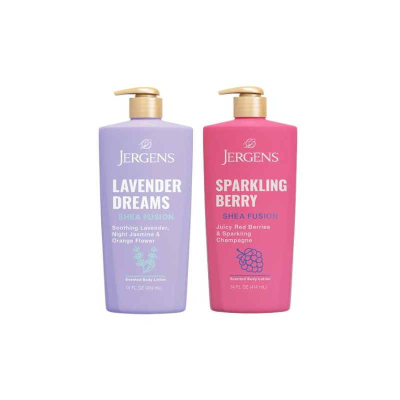 Includes two 14oz bottles of Jergens Shea Fusions Body Lotion for extended use
