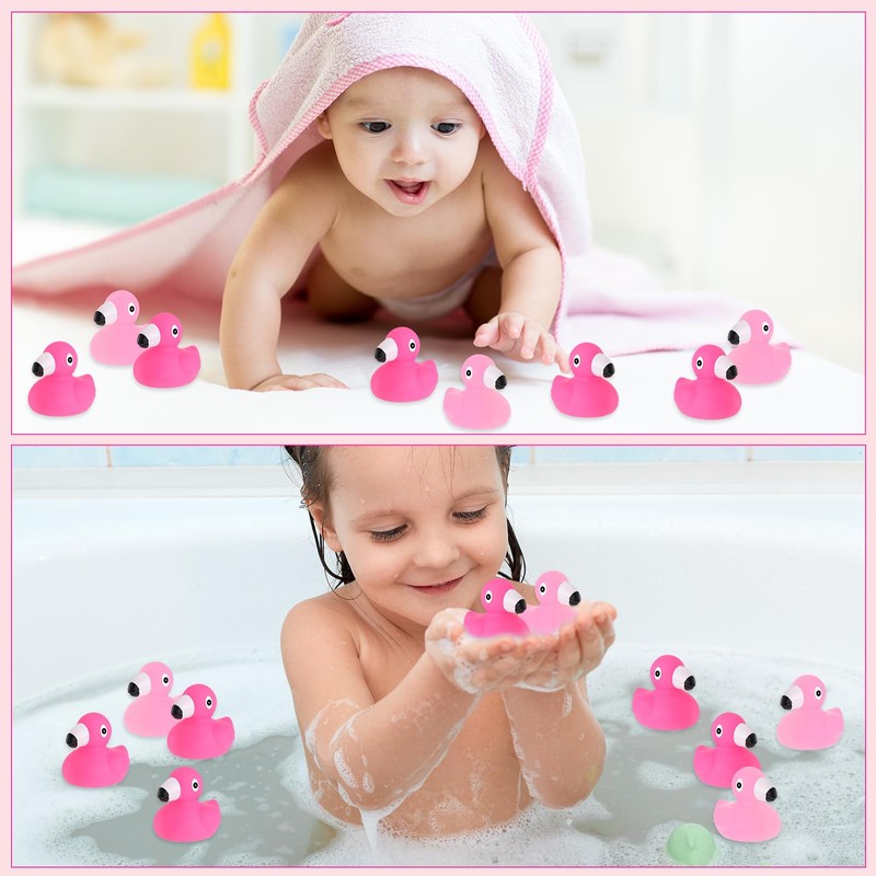 Jerify 48 Pcs Flamingo Rubber Duck Bulk Rose Pink Light Pink Flamingo Bath Toys Floating Flamingo Toys Summer Beach Rubber Ducks for Shower Toys Party Favors Decor Classroom Prize with Storage Bag