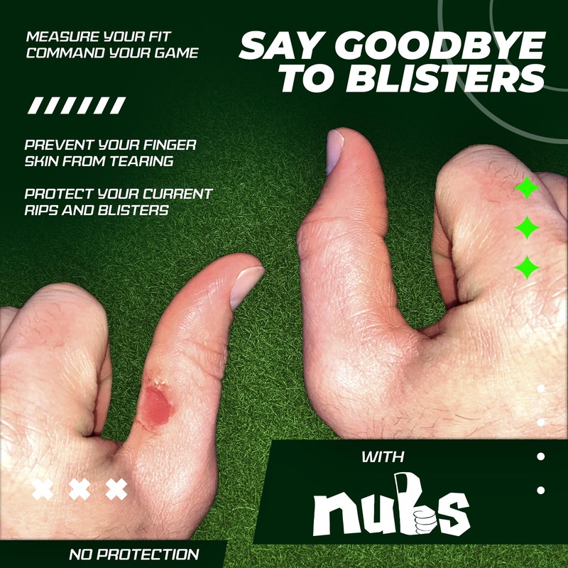 - USE ON THUMBS AND FINGERS - NUBs can be used on any finger or thumb to cover those frequent problem areas; These golf finger protection Caddies are easy to slip on and stay on for an entire day; Get rid of sticky golf thumb tape that comes off mid-round