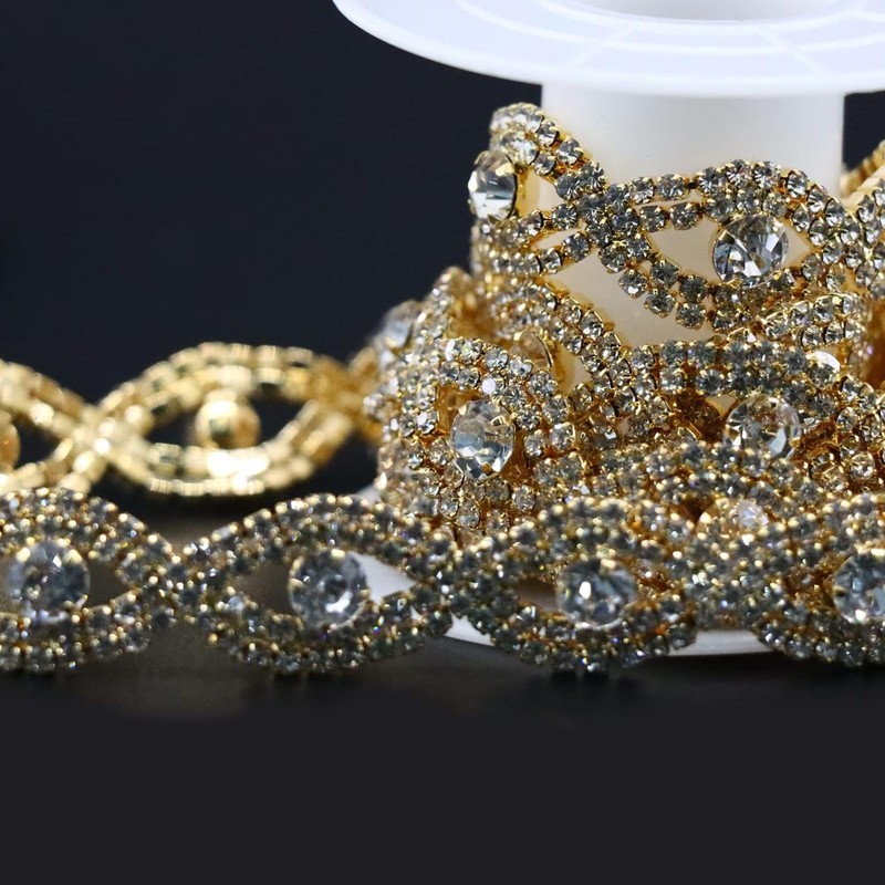 Jerler 2 Yards Crystal 2mm Rhinestone Trim Close Chain Applique for Sewing Crafts Ideal Wedding Party Clothing DIY Decoration (Style-Elegant Eye-Gold, 2 Yards)