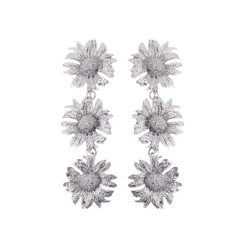 Jerollin Silver Flower Geometric Statement Earring for Women,Unique Design Drop Dangle Earrings Jewelry