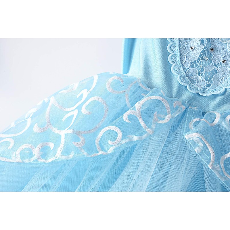 JerrisApparel Girls Princess Costume Puff Sleeve Fancy Birthday Party Dress up (6, Blue with Accessories)