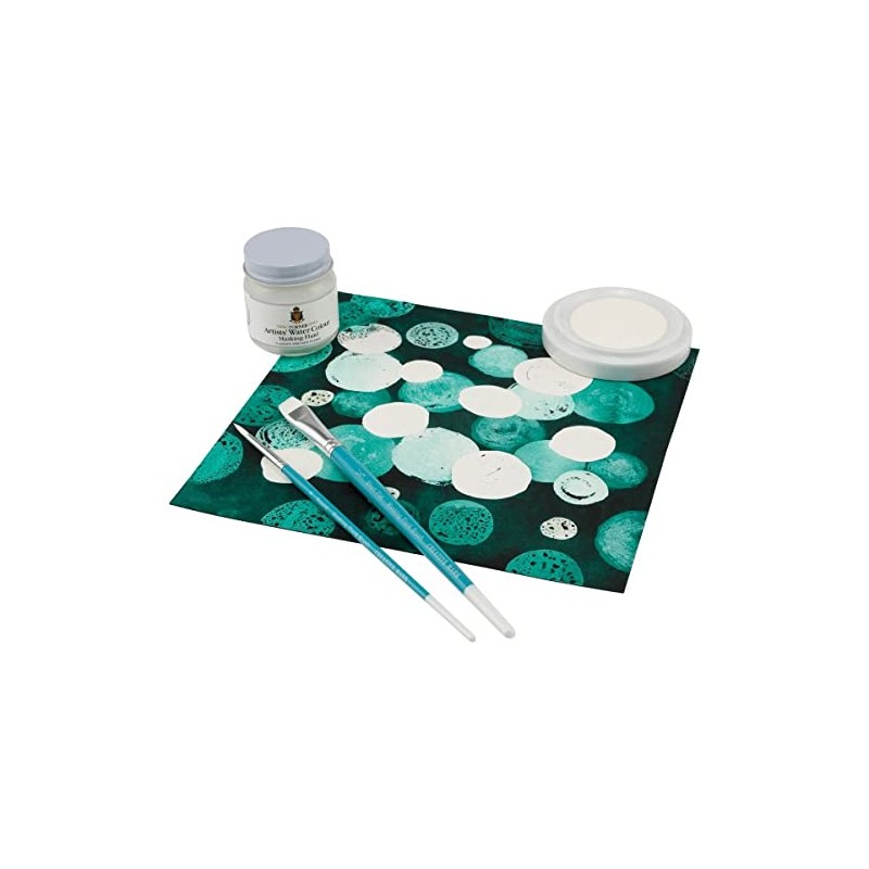Jerry's Artarama Masking Fluid for Watercolor Painting Kit with 40ml Bottle, 10 Synthetic Brush Set, 2 Rubber Cement Pick Ups; Precise Detail, Easy to Remove