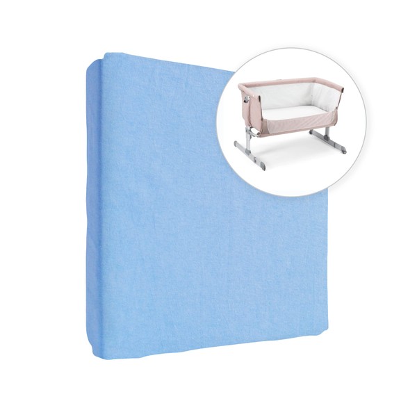 Jersey 100% Cotton Fitted Sheet for 90 x 55 cm Baby Bedside Crib Mattress (Blue)