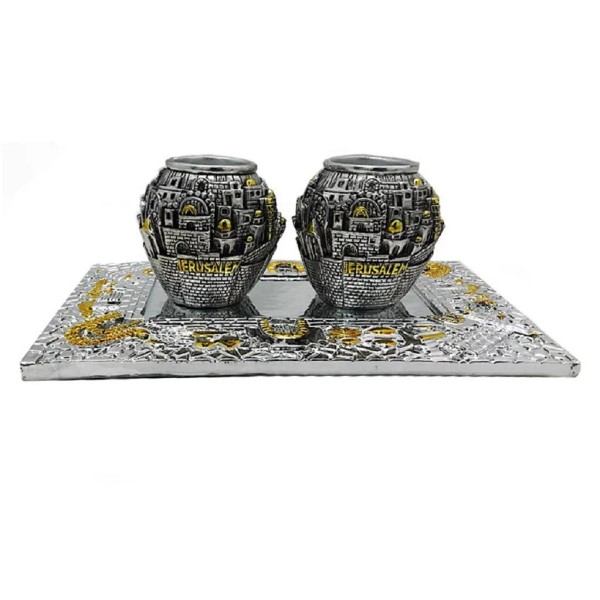 Jerusalem Shabbat Candlesticks Holder with Tray