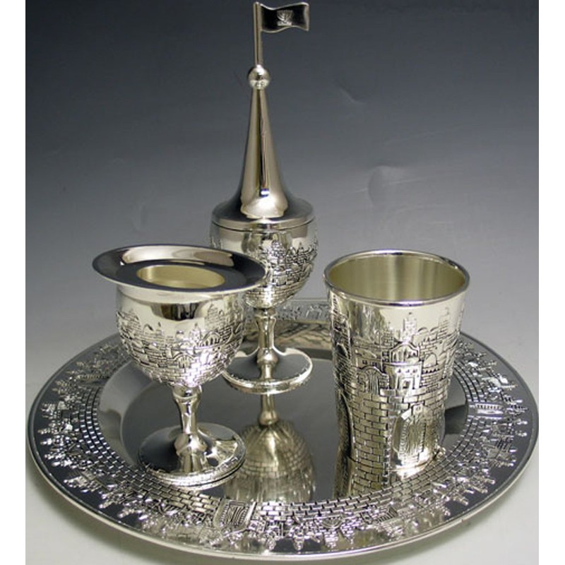 Jerusalm Design Silver Plated 4 Piece Havdalah Set