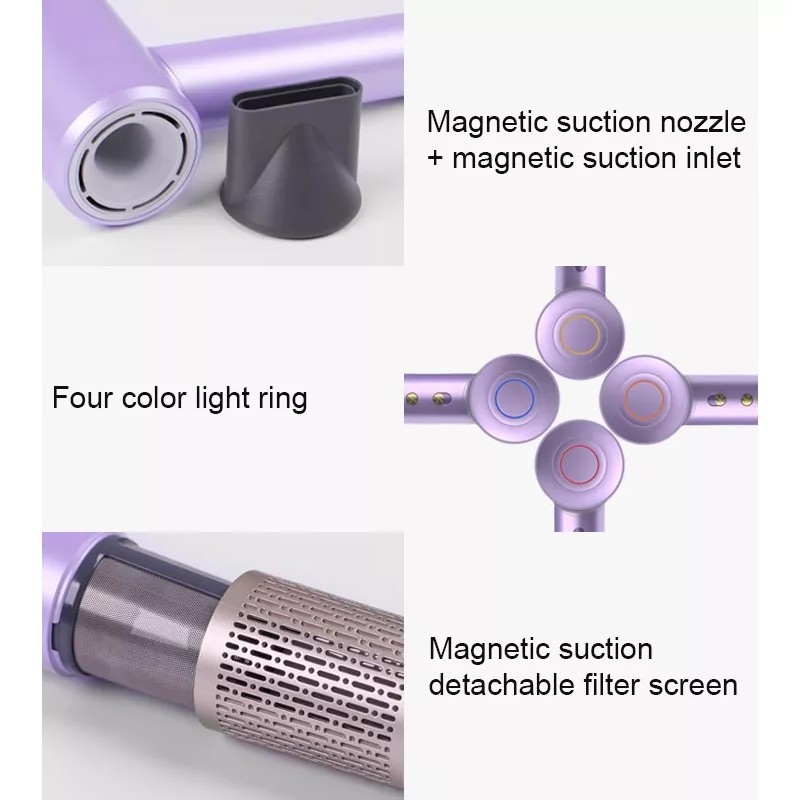 Libera 300 millones de iones negativos para suavizar el frizz, reparar el cabello dañado y humectar, logrando un cabello voluminoso y con brillo. La boquilla magnética concentra el flujo de aire para estilizar con precisión.
