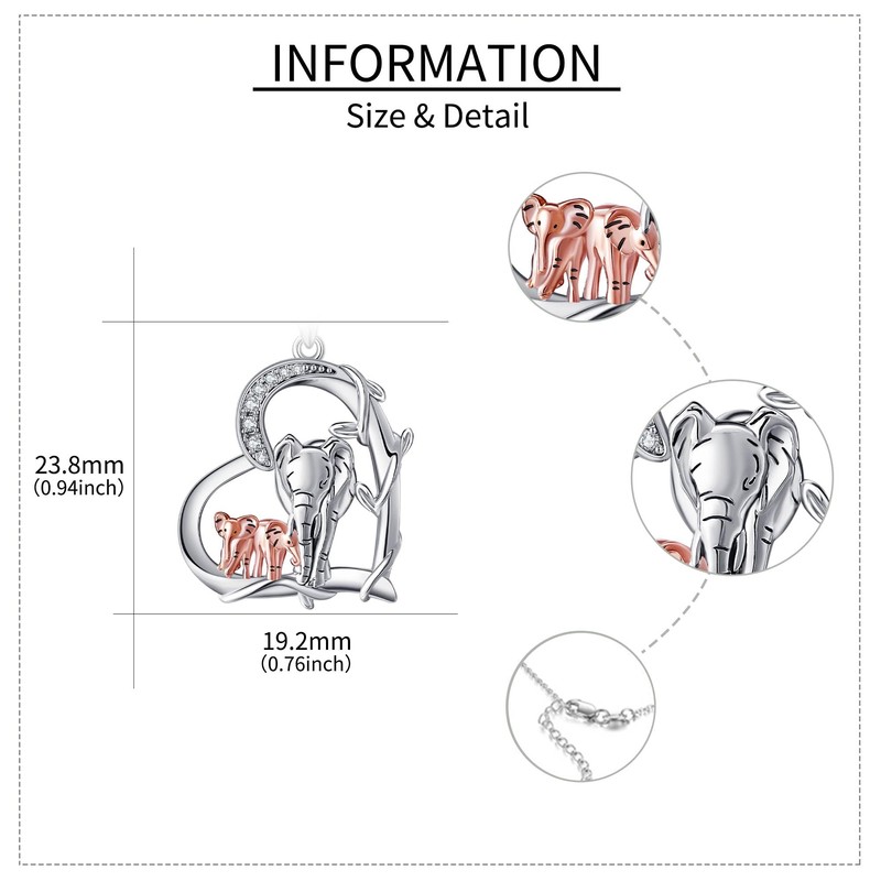 - ADORABLE DESIGN Our sterling silver elephant necklace features a heart shaped frame with an elephant with mother and her two small ones. This design symbolises motherly love, unity and family ties.