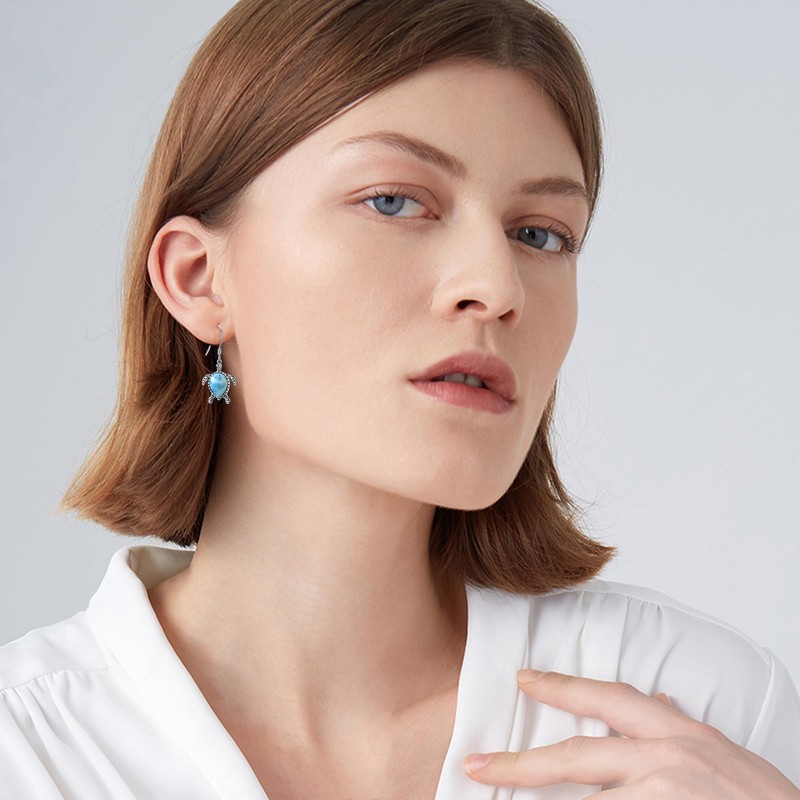 - 【Unique Design】The turtle earrings are made of 925 sterling silver with a turtle design hanging from the earlobe and described with blue larimar stone.They make a cute and playful addition to any outfit, adding a touch of personality and boho style.