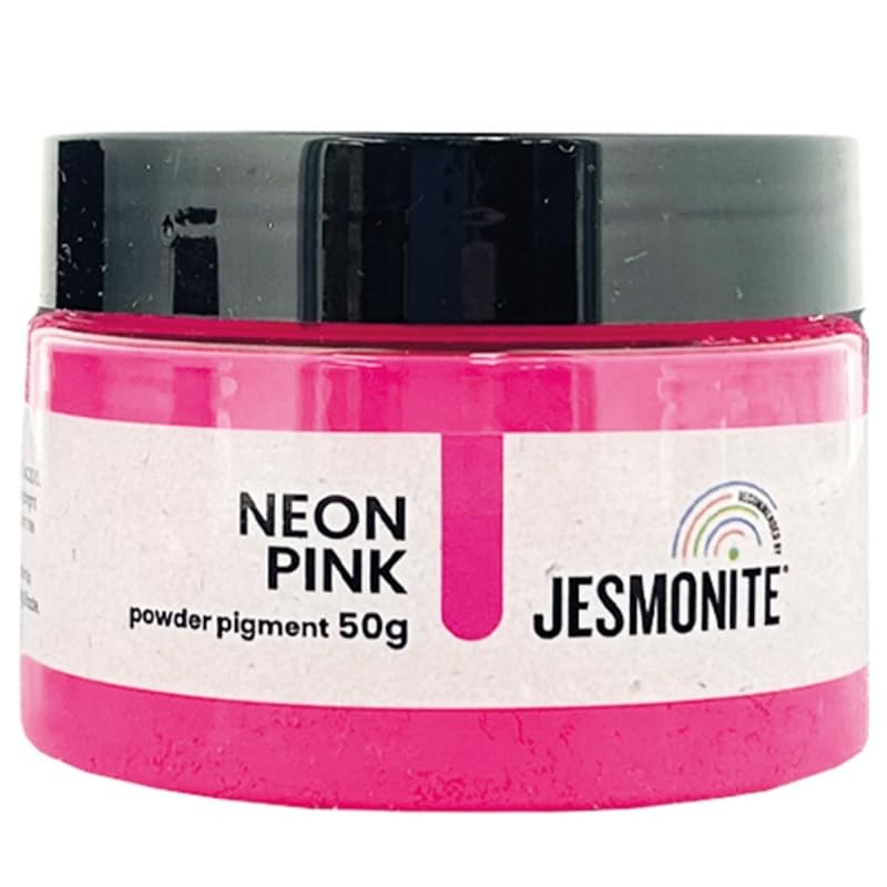 - Jesmonite Pigment Powder Colour: Neon Pink Quantity: 50 g of Natural Origin Maximum Added Rate: 2% (20 g/kg) Compatibility: Jesmonite AC100/AC200/AC300. Mix with a mixing blade