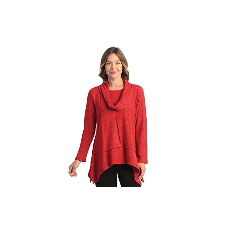 Jess & Jane Solid Soft-Brushed Hacci Cowl Neckline Tunic - VP3 Red