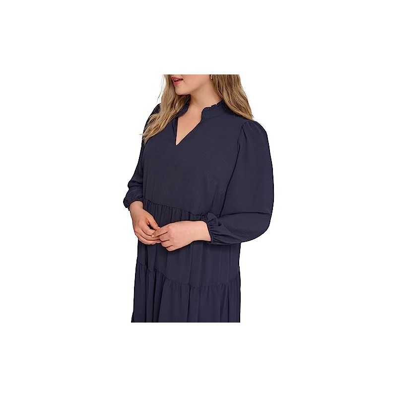 Jessica Howard Women's Plus Size Long Sleeve Tiered Maxi Dress with V-Neck, Navy, 16