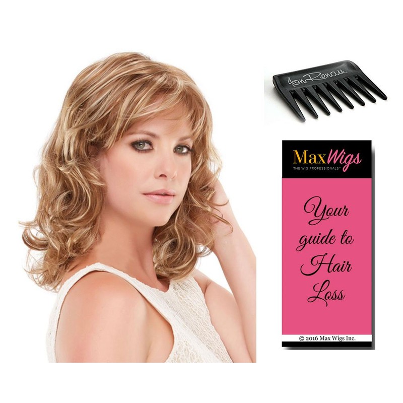 Jessica Wig Color FS613/24B Honey Syrup - Jon Renau Wigs 9" Shoulder Length Curly Synthetic Straighter Crowne Layers Big Round Curls Women's Basic Cap Bundle MaxWigs Booklet, Comb