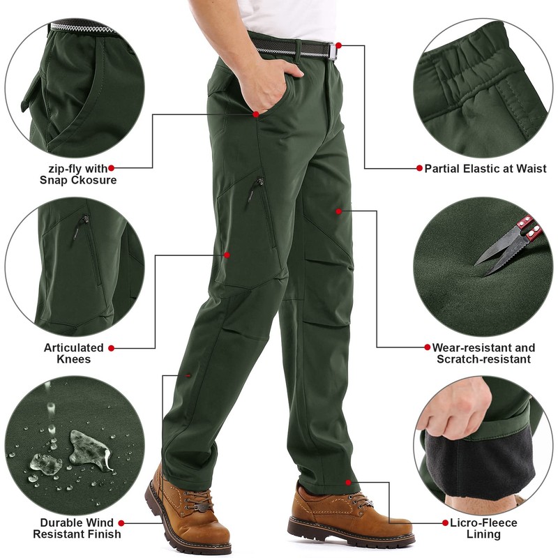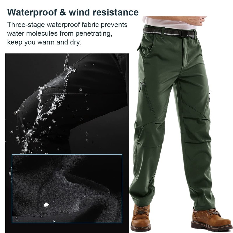 Jessie Kidden Mens Waterproof Pants Hiking Snow Ski Fleece Lined Insulated Soft Shell Winter Pants (CA6070 Army Green 38)