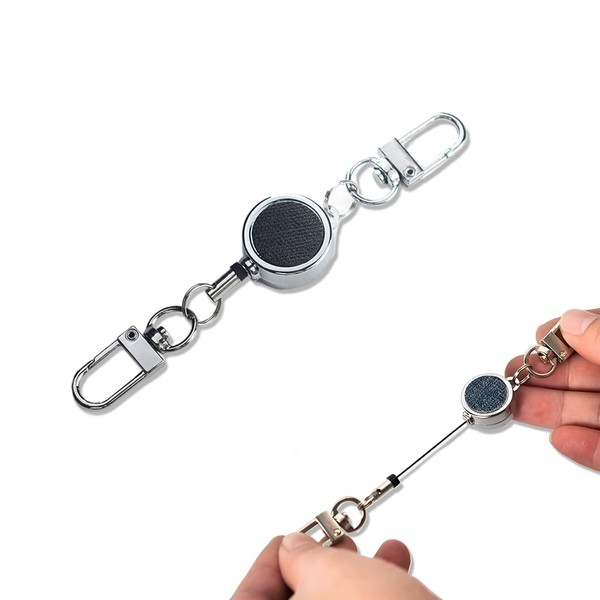 [Jessimi] キーホルダー キーリール リールストラップ レディース おしゃれ かわいい キーリング 伸縮リール カラビナ搭載 小型 軽量 鍵 アウトドア 伸びる ゴールド シルバー (シルバー, ブラック)