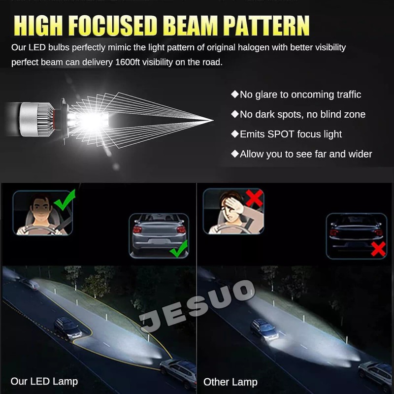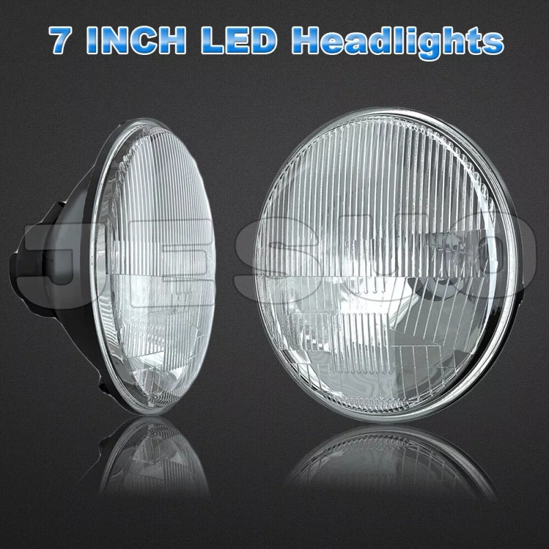 | 7" Inch Round Diamond Crystal Clear Glass Lens / JESUO Headlight Conversion Kit contains everything you need to upgrade your headlights to the newest LED headlight technology while keeping that classic look! -Made with High Quality Glass Lenses - NOT cheap plastic! -Housing has Removable bulb sockets for you to install the new LED bulbs! -Direct Plug & Play design (certain vehicles will require slight modification) -Professional Installation is highly recommended -Warranty 5 years Pair (2 Bulbs Right And Left) 7" Inch Diamond Crystal Clear Semi Sealed Beam Glass Lens Housing Headlights. This Pair Of Headlights Includes 70W Super White LED H4 Light Bulbs. These Headlights Have A Clean Custom Look But Fit Into The Stock Buckets And Plug Into The Stock Wiring Without Modification. These Light Up 500 Percent Brighter And Whiter Than The Standard Stock Sealed Beam Incandescent Headlight Bulbs. These Have The Original 3 Prong Plug Design On The Back So They Will Plug Directly Into The Original Wiring Harness. These Will Fit Any Car Or Truck That Has 2 Round Glass Headlights That Are 7" Inches. H4 LED Bulbs Specifications -Color: 6000K Cool White -Power Consumption: 70 Watt -Luminosity: 10,000 LM -360 Degree / P2 Series CSP Chip Perfect Beam Angle -H4 - Dual Beam Function (You will have HIGH AND LOW!) -500% Brighter than Stock Halogen -Built in IC Circuit (Current Regulator)-Prevents LED Damage From Voltage Variations & Spikes. -Lifespan: 50,000 Hours -Operating Voltage: DC 12V / 24V -Amperage: 1.9A - 2.9A -Maintenance free, Waterproof IP67, Shockproof -Warranty 5 years Contents: - 2x Headlight Housings - 2x H4 LED Bulbs (Hi/Lo Dual Beam) |