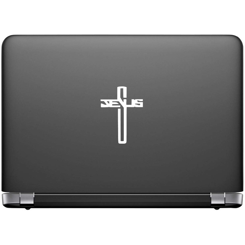 Jesus Cross Christian [Pick Any Color] Vinyl Transfer Sticker Decal for Laptop/Car/Truck/Window/Bumper (10in x 7.4in, White)