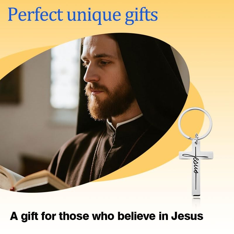 • Jesus Christ Cross Keychain for Women Men: The jesus keychain featured cross pendant engraved with jesus, a meaningful symbol for christian believers, adding a constant reminder of faith, suitable use as relogious keychain, christian keychain for women men, religious ceremony keychain for friends bestie, jesus keychain, jesus christ keychain for women men, stainless steel cross keychain