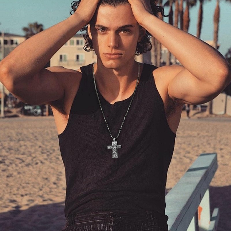 Jesus Crucifix Cross Pendant Necklace for Men Women, Titanium steel Religious Amulet Cross Pendant Christians Catholic Jewelry Gift