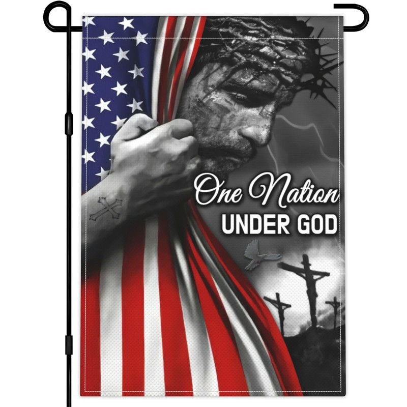 Jesus Garden Flag 12x18 Inch One Nation Under God Garden Flag 3ply Double Sided American Flag With Jesus Christ On It Garden Flags for House Outdoor Yard Christian Faith Patriotic Garden Flag Decor