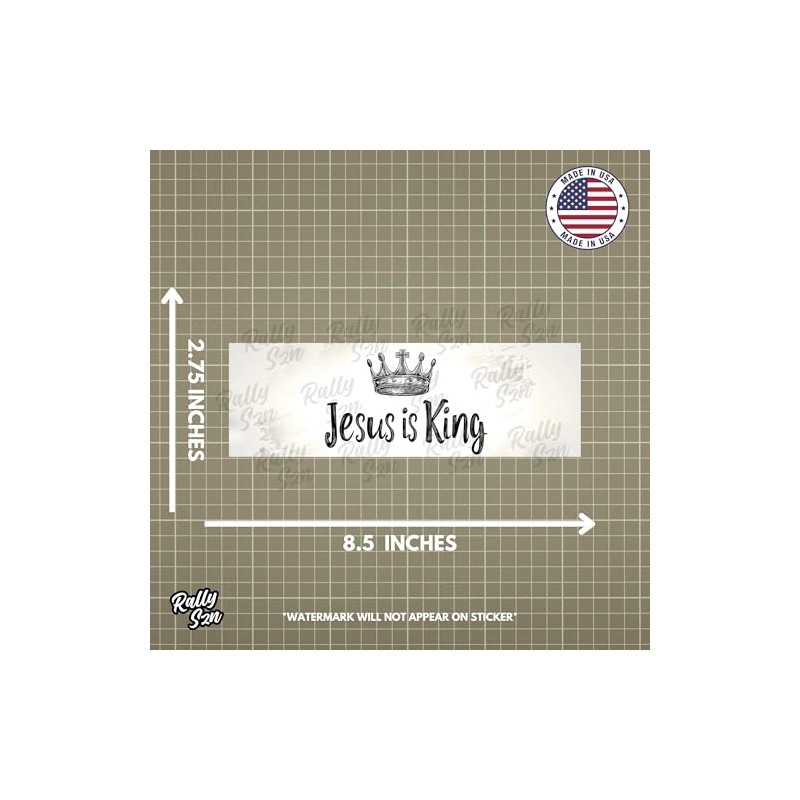 Jesus is King - Classic Christian Jesus Bumper Sticker for Car, Wall, Window, Vehicle, Weather Resistant, UV Resistant, Crown
