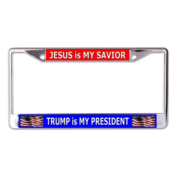 Jesus is My Savior Trump is My President Chrome License Plate Frame