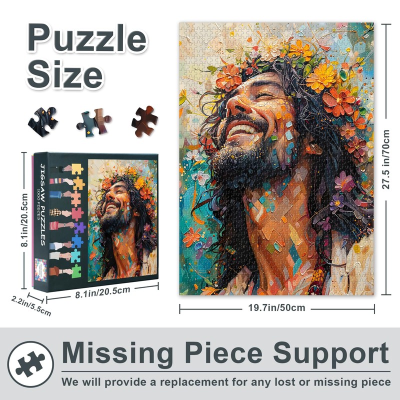 Jesus Puzzles for Adults, 1000 Pieces, Jesus Christ Portrait Savior, Face Games Puzzle, Colourful Religious 1000 Piece Puzzle with Hidden Images, Challenge Family Activity, 27.5 x 19.6 inches