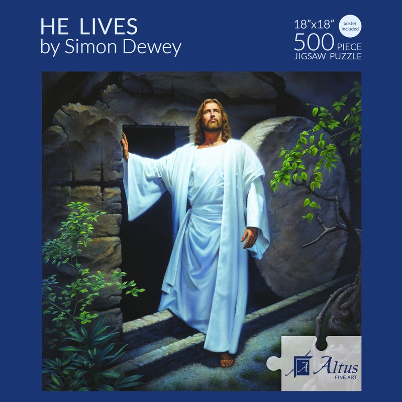 - This Jesus jigsaw puzzle comes with a free 13.5" X 10.5" poster of "He Lives" by Simon Dewey. Use it to help you complete this 500 piece religious puzzle over and over again or hang it on your wall.