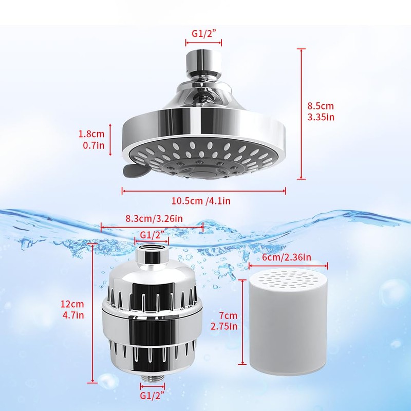 - 【Fácil de Instalar】 - Cabezal de ducha universal (G1/2) y shower filter para cualquier brazo de ducha estándar - se instala en cuestión de minutos simplemente apretando a mano la conexión. Se adapta a cualquier tipo de ducha estándar, incluidas duchas murales, rociadores y duchas de mano. No se necesitan herramientas