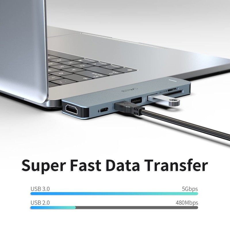 JESWO HUB USB C, 7 en 2 Adaptador USB C a HDMI 4K, 1*USB 3.0, 2*USB 2.0, 1*Multifuncional Tipo C, Lector Tarjeta SD/TF, Compatible con MacBook, MacBook Pro, MacBook Air - No Utilizar con Funda