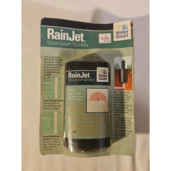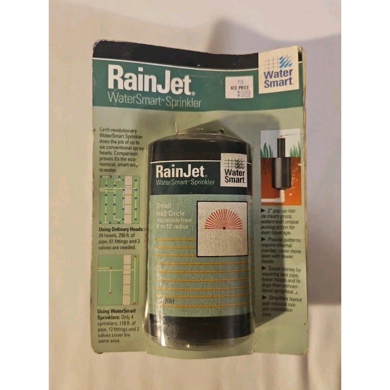 The Rain Jet Water Smart Sprinkler RS-20F is a pop-up sprinkler designed for garden irrigation. With a spray range of up to 24 feet, this sprinkler is suitable for planted areas, rows, and lawn watering. The set includes fittings, connectors, and a spigot for easy installation in both above-ground and underground garden areas. Made by JET, this sprinkler offers a reliable and efficient watering solution for your outdoor spaces.
