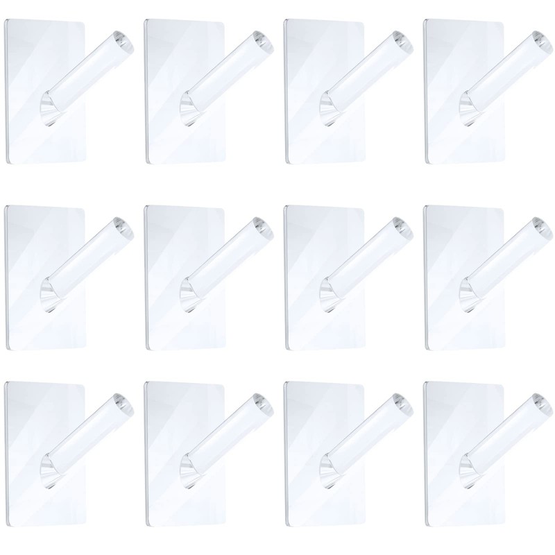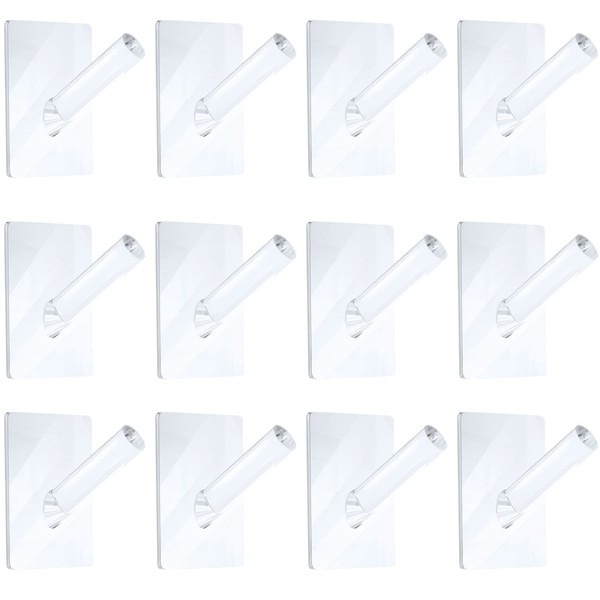 Jetec 12 Pieces Acrylic Wall Mounted Coat Hooks Hat Rack Robe Single Organizer Adhesive Clear Wall Hook Decorative for Clothes, Hat, Towels Hanger(Clear)