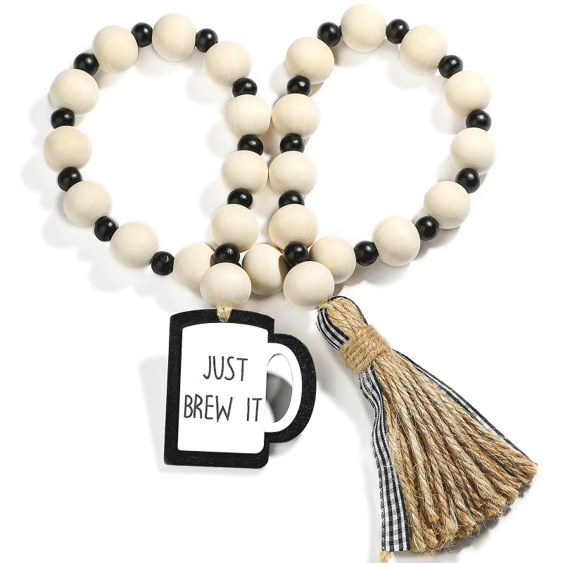 - Coffee theme: coffee rustic wood beads garland with tassel for farmhouse tiered tray decor kitchen wall rustic coffee bar and home decorations