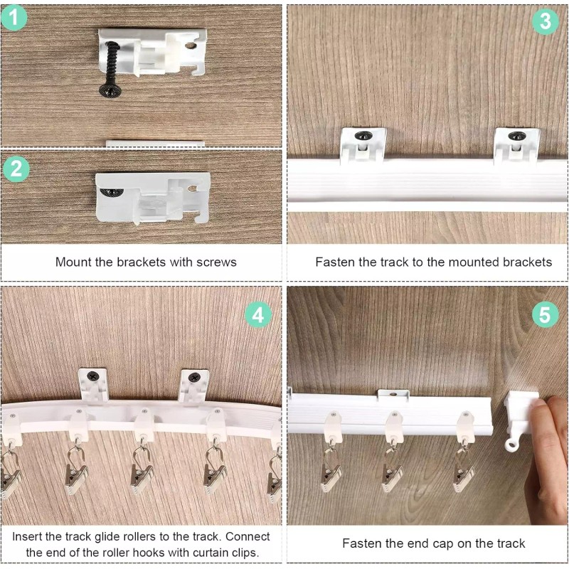 - Durable materials: the curtain track is made of ABS, metal and plastic, the curtain clip is made of stainless steel