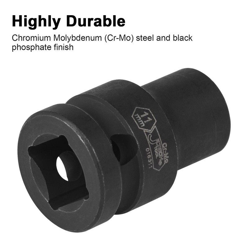 JETECH 1/2 Inch Drive 11mm Impact Socket, Chrome Molybdenum Alloy Steel, 6-Point Hex Shallow Socket for Ratchets, Torque Electric Wrenches, Strong and Durable, Metric