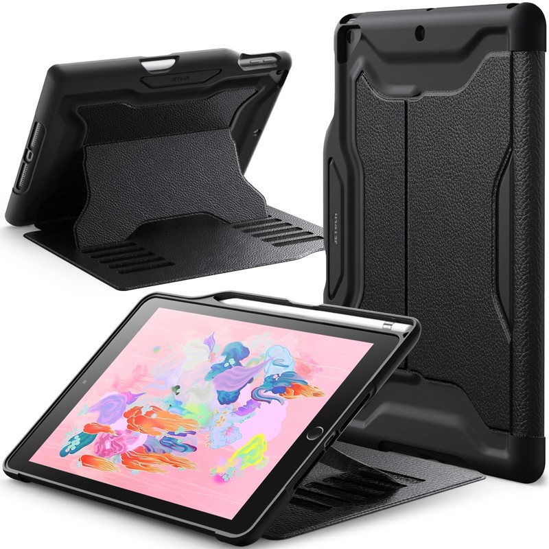 JETech JETech Case for iPad 9.7-Inch 2018/2017 (6th/5th Generation) with Pencil Holder, Protective Multiple Angle Magnetic Stand, Shockproof (Black)