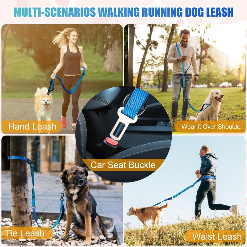 1. Adjustable Hands Free Dog Leash: With 22"-52" Waist Range and 4.7-6.3 FT totaly lenth range multifunctional hands free dog leash works well as a waist leash, cross-body leash and basic hand leash;