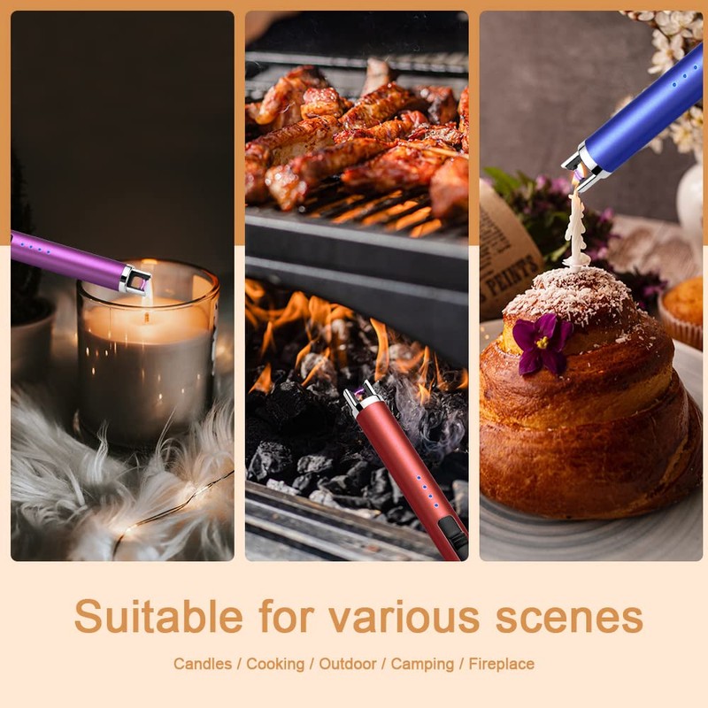 - Portátil y práctico: el diseño a prueba de viento y salpicaduras evita que el pulso eléctrico producido se vuele por el viento fuerte, el diseño ligero hace que el encendedor sea fácil de transportar e ideal para camping, barbacoa, senderismo, actividades en interiores y exteriores.