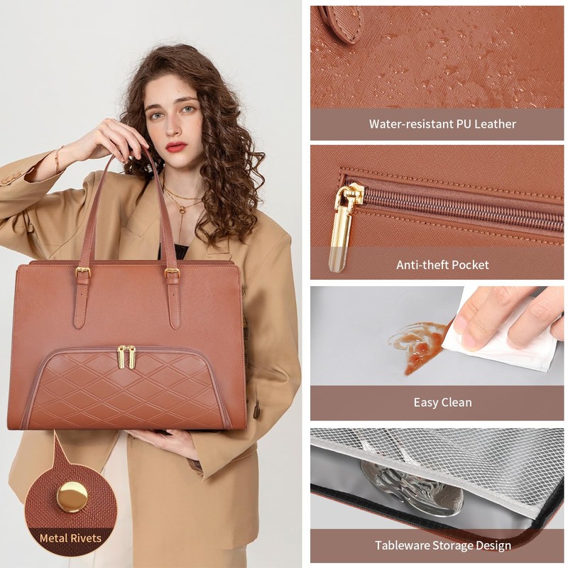 - Insulated Cooler Function & Leakproof: Will you need to pack your lunch in your work bag? This laptop tote bag for women included an insulated cooler compartment which keeps foods warm and keeps drinks cold and easy to clean. Measuring 13.78''x5.12''x5.9''(L*W*H) , the lunch bag offers a 7.5L storage capacity, it can fit up to 10 cans of drinks or 2 food containers and some snacks.
