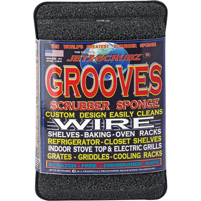 - Jetz-Scrubz grooves scrubber sponge easily cleans oven racks, cooling racks, stovetop and electric grills, wire shelving and more without scratching