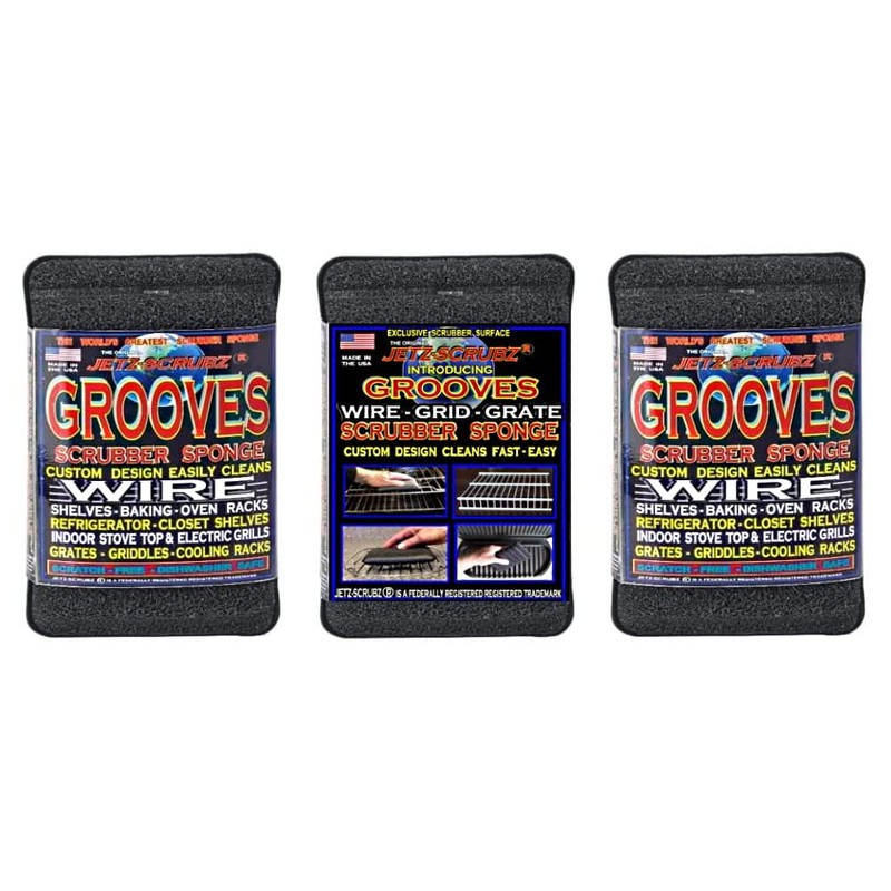 Jetz-Scrubz Grooves Scrubber Sponge - Cleans Wire Racks & Shelves, Baking & Cooling Racks, Pack of 3
