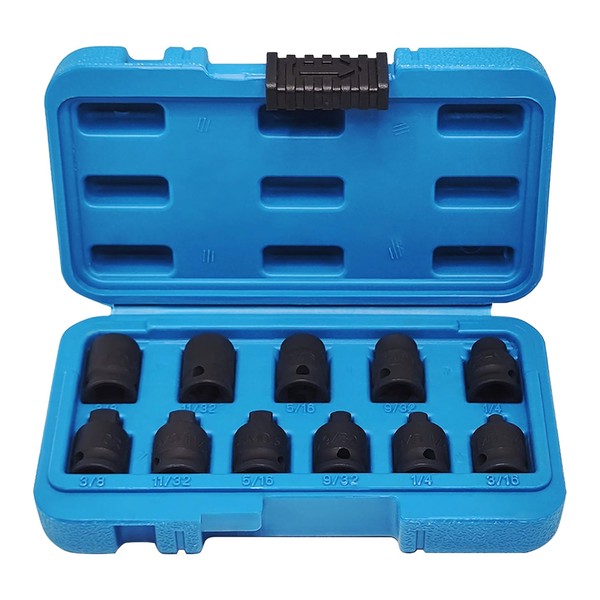 JEUCLEL 11PCS 3/8" Drive Impact Bits Sockets Set, Tapered Male Square Drive, Chamfered Female Square Drive